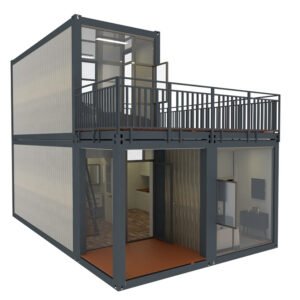 20ft Two-Story Flat Roof Expandable House with Floor-to-Ceiling Windows, External Stairs, and Balcony